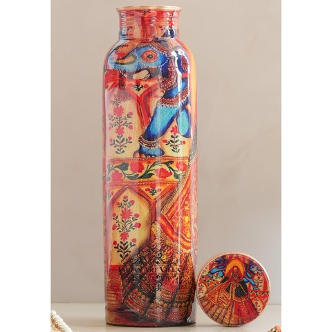IndianArtVilla бутылка для воды из чистой меди, раджастхани, традиционный Печатный дизайн, 900 мл для питья и хранения